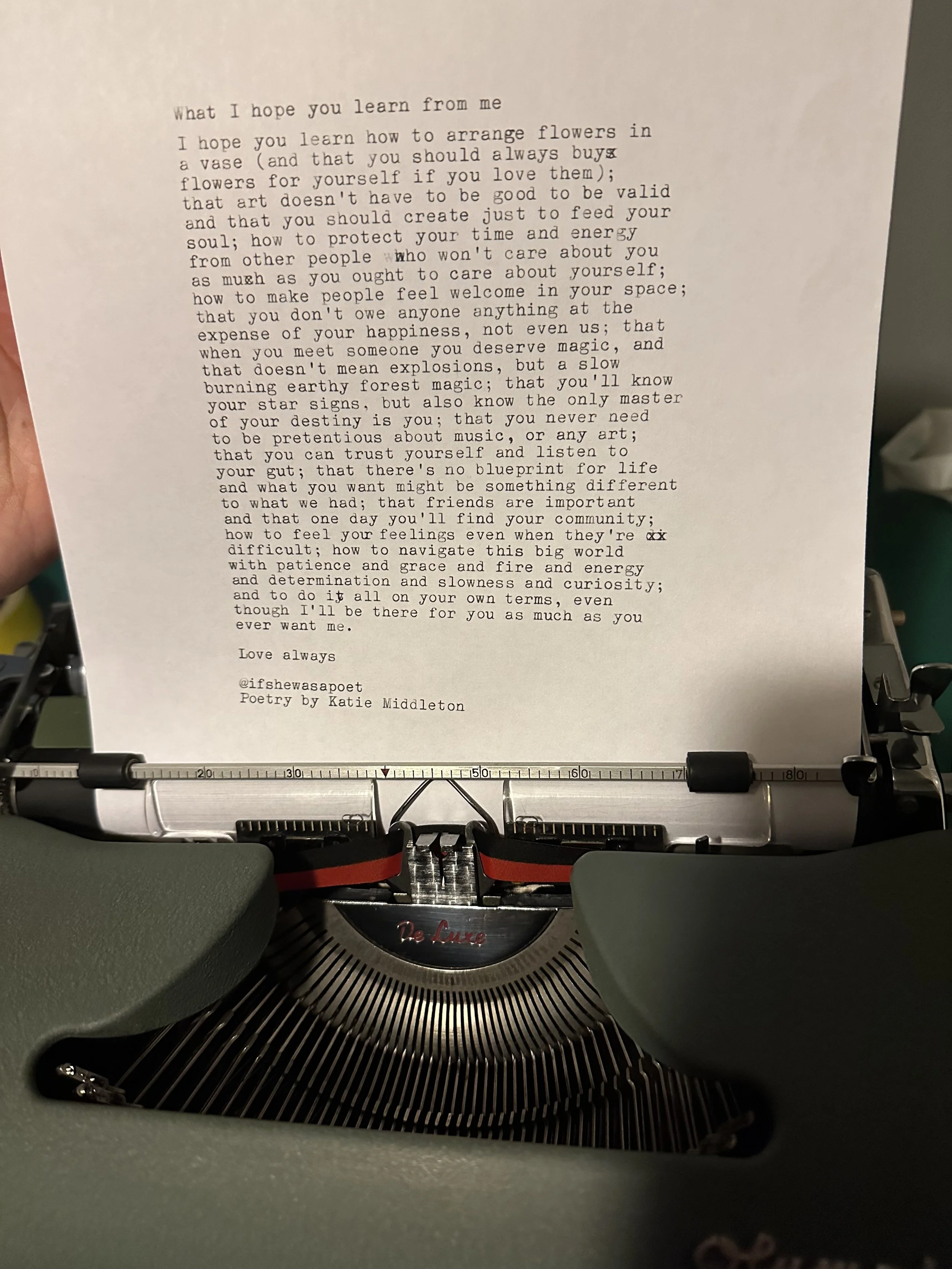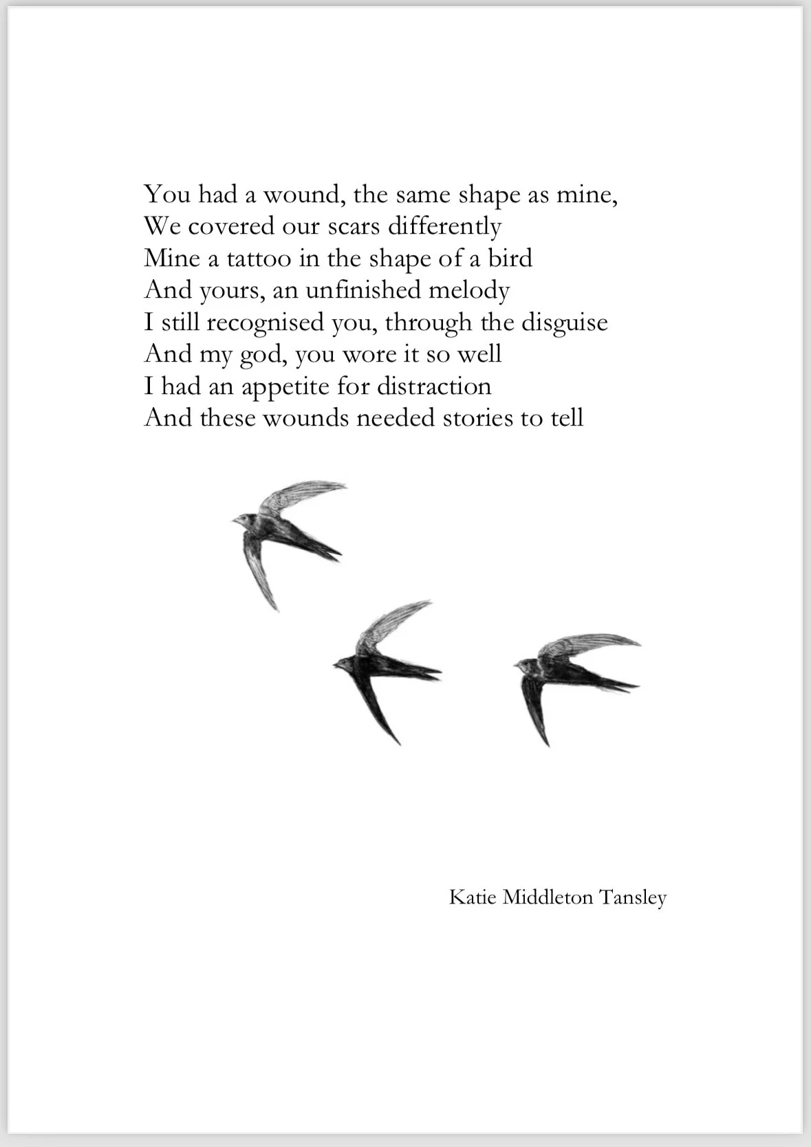 ‘Don't Think About Death' £15.00 You Had a Wound Art & Poetry Print A5 £7.00 I always loved you quietly poem A5 print £7.00 Soft Peach Art & Poetry Print A5 £7.00 Rathmell Aurora Art & Poetry A5 Print £7.00 Custom Poem £35.00 Custom poem hand typed £70.00 Custom poem hand typed with illustration £140.00 Existing poem - hand typed on typewriter A4 £35.00 Gift card from £10.00